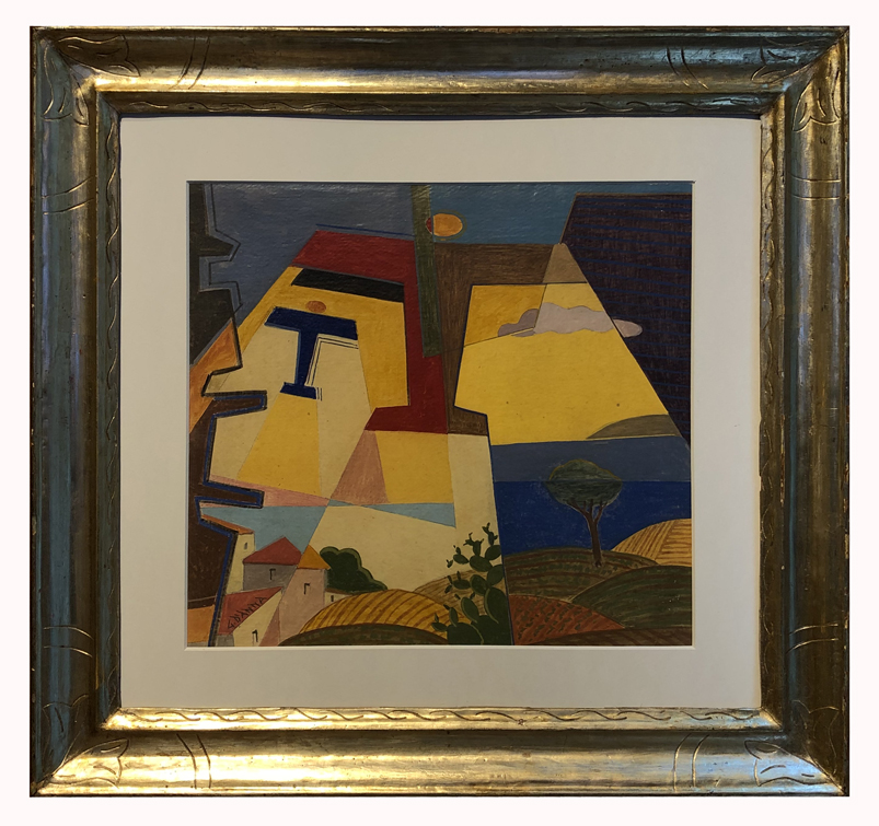 Giulio D’Anna – Aerei caproni in volo, circa 1929/30. Catania, 1929/30 ca. Olio su cartone, 42,5 x 48 cm. Fa parte di una serie di dipinti realizzati prima della firma del manifesto dell’aereopittura (sottoscritto ufficialmente nel 1931). L’opera è accompagnata da autentica su fotografia dell’Archivio Storico Futuristi Siciliani Palermo a firma Salvatore Carbone e archiviata presso lo stesso Archivio.