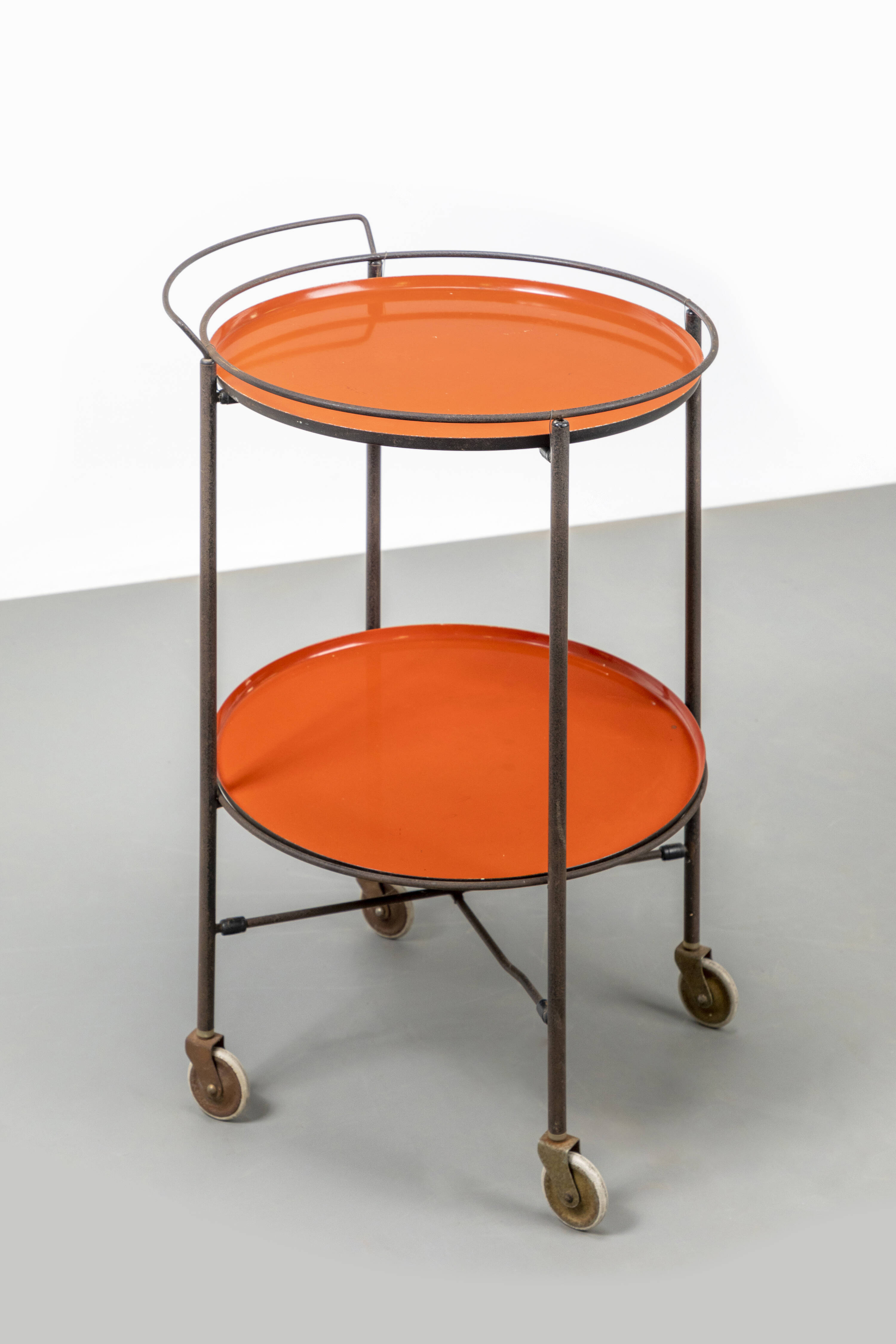 Mobile Bar Art Decò Carrello 2 piani arancio del XX Secolo Anni 50, Opera d'arte esemplare - Robertaebasta® Art Gallery opere d’arte esclusive.