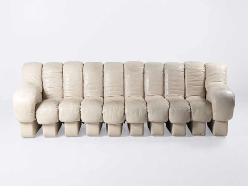 Eleanore PEDUZZI-RIVA (nata nel 1939) & Ueli BERGER (1937-2008) & Klaus VOGT (nata nel 1938) & HEINZ ULRICH (20°). “DS600”. Divano con struttura in legno interamente rivestita in pelle panna composto da dieci elementi snodabili di cui due formano braccioli. Edizione DE SEDE