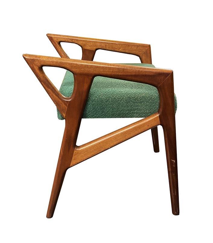 Gio Ponti, coppia di panchetti in legno con seduta imbottita, modello 687, produzione Cassina, Italia, Anni ’50. Dimensioni: cm 45 x 46x 52 H ( h seduta cm 42)