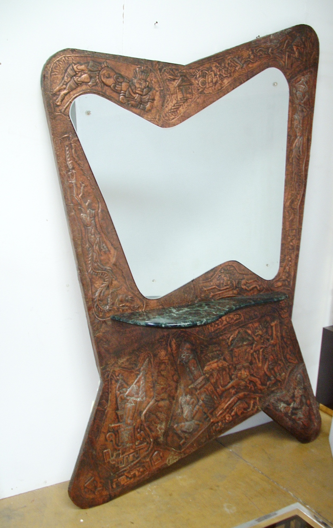 ANGELO BRAGALINI – Fidenza, 1913-1994. Specchiera in rame sbalzato. Anni ’60. Dimensioni: cm137x34x209h