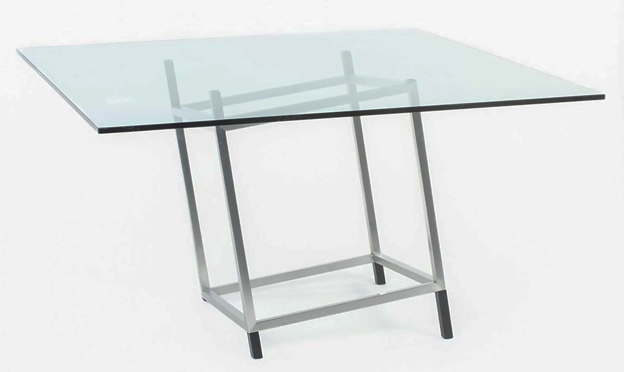 François Morellet – Tavolo modello Destabilization per Tecno. Alla base targhetta del produttore e firma incisa, struttura in acciaio e piano in vetro temperato, Italia anni ’90. Dimensioni : cm 130 L x 71 H