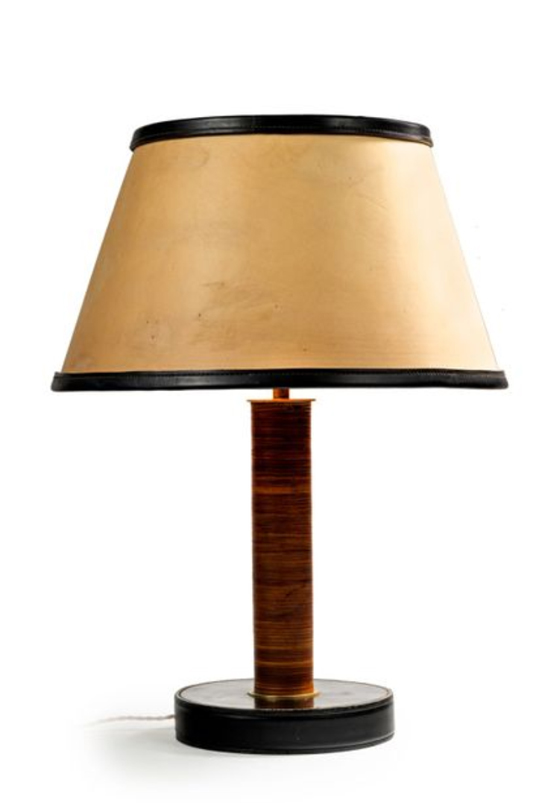 Lampada da tavolo Hermes pelle nera e marrone del XX Secolo ,Vintage. Opera originale e disponibile - Robertaebasta® Art Gallery opere d’arte esclusive.