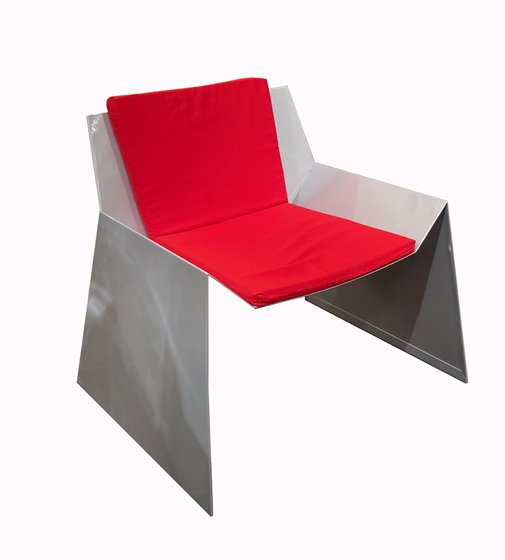 Cattelan Italia, Coppia di polrone Alaska in acciaio laccato grigio, seduta imbottita rivestita in tessuto. 2002 circa. Dimensioni: cm 76x 62 x 68 H