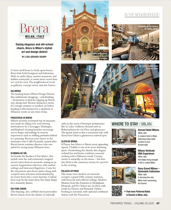 Tra le vie lastricate e le atmosfere d’altri tempi, Brera incarna l’anima più artistica e raffinata di Milano. Gallerie d’arte, profumerie di nicchia e bistrot accoglienti si affacciano su strade vivaci come via Fiori Chiari e piazza del Carmine, dove tradizione e creatività si incontrano in un perfetto equilibrio tra stile e storia.