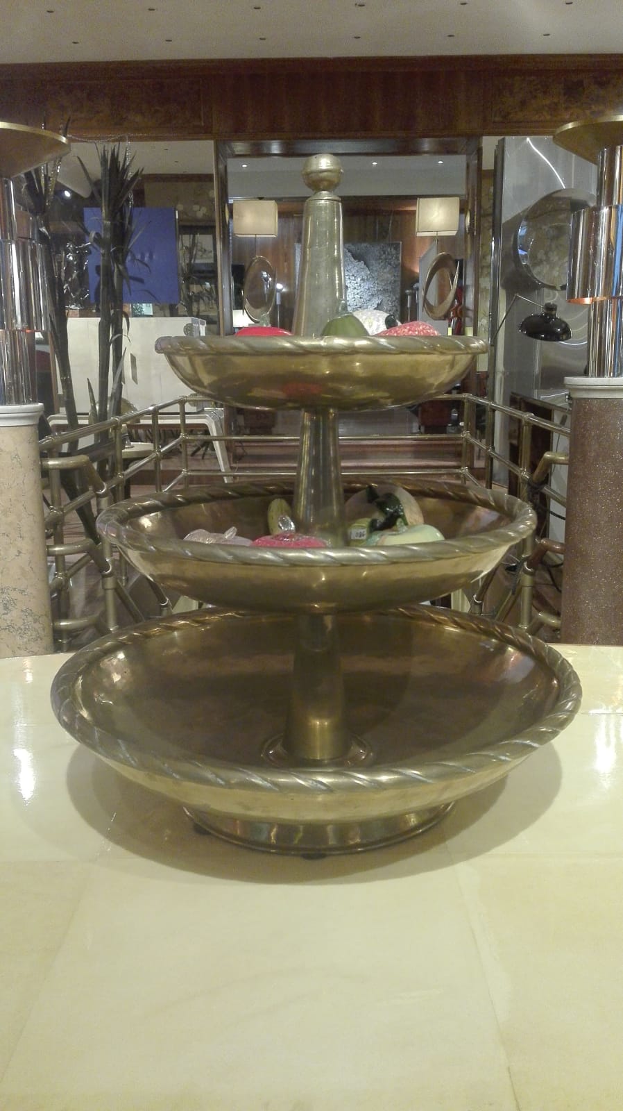 Fruttiera in ottone, tre livelli. Dimensioni: diam cm51x61h