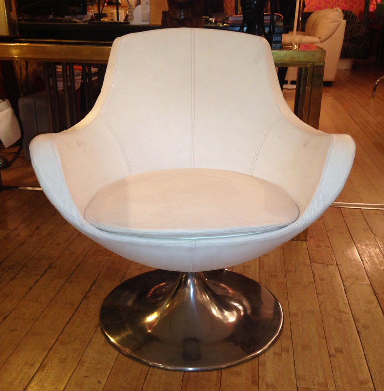 Poltrona Art Decò Pelle bianca tonda del XX Secolo Pezzo di storia autentico - Robertaebasta® Art Gallery opere d’arte esclusive.
