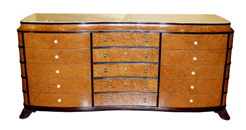 Cassettiera Art Decò Radica profili neri del XX Secolo , Opera d'arte esemplare - Robertaebasta® Art Gallery opere d’arte esclusive.