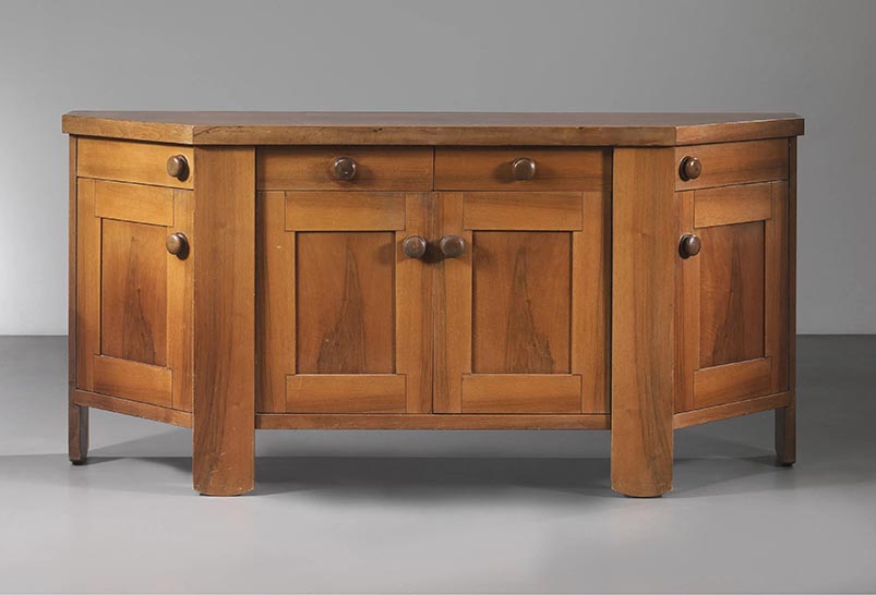 Silvio Coppola. (Brindisi, 1920 – 1985). CREDENZA in legno. Produzione Italia, 1960 circa. cm H95xL203xP50. Bibliografia di confronto. Domus 433, 12/1965, p. 47