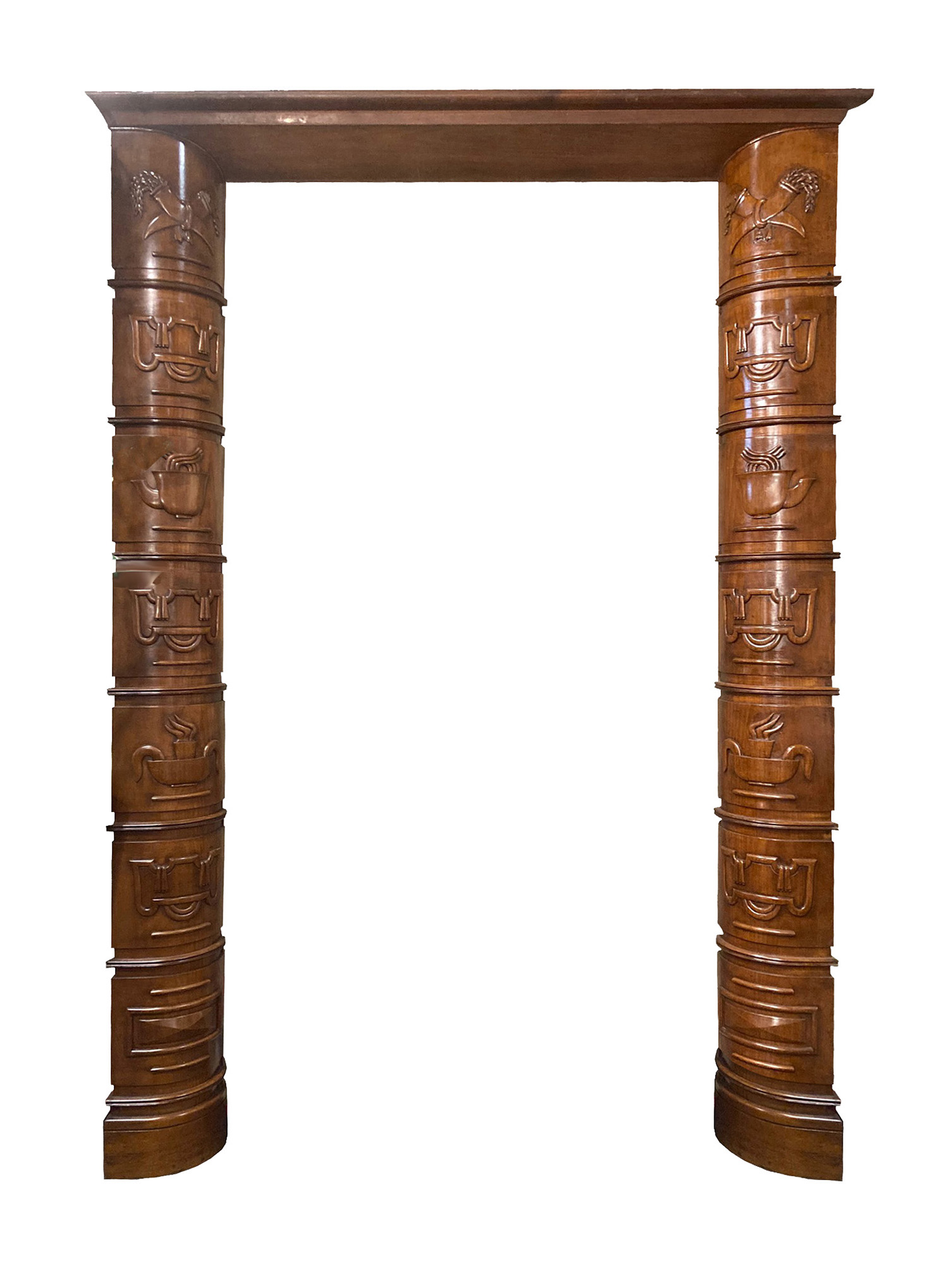 Tommaso Buzzi (Sondrio 1900 – Rapallo 1981) Portale boiserie intagliato in legno di noce con motivi a rilievo. Italia anni 30. Dimensioni : cm 175 L x 250 H