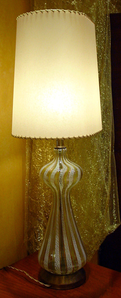 Lampada da tavolo Vetro righe gialle del XX Secolo ,Vintage. Opera originale e disponibile - Robertaebasta® Art Gallery opere d’arte esclusive.